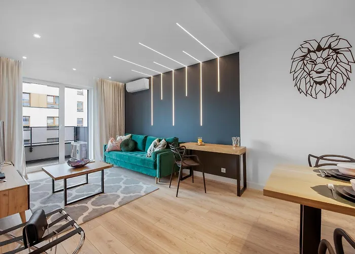 The 56 m² Luxurious Apartment Warsaw Mokotow is located a mere 0.8 km from Marynarska Point and a mere 11 minutes' walk from Adgar Plaza Conference Centre. At this 1-bedroom apartment, Wi-Fi and complimentary private parking are also provided.